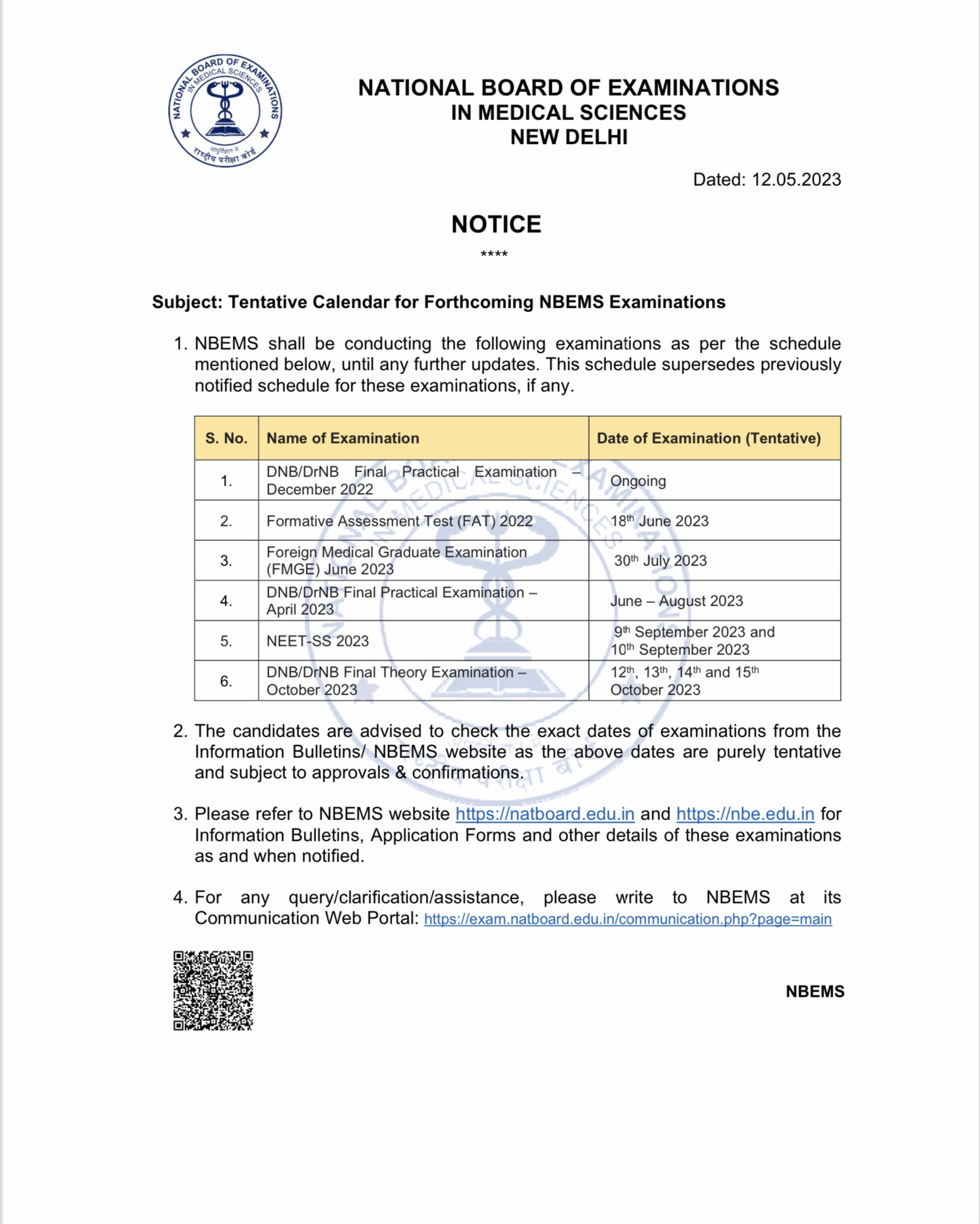 NEETPG 2024 on X: “➡️NBE has released Exam Calendar for 2023